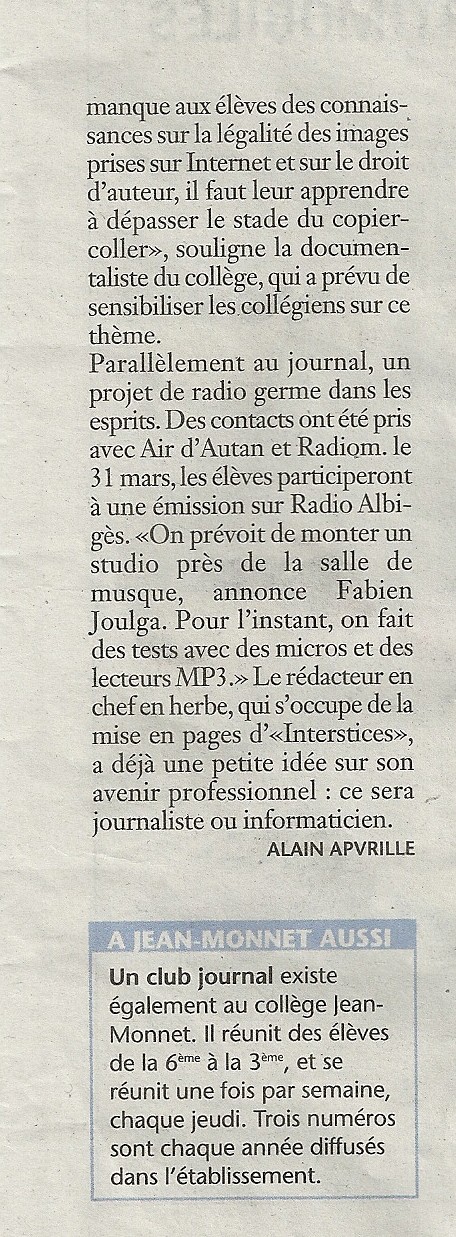 Certains journaux ou radios se sont intéressés à Interstice... (cliquez sur les images pour les agrandir)